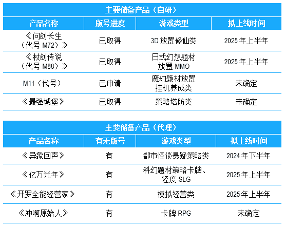 公司储备多款新品,,,期待为玩家解锁更多新鲜体验,,部分产品如下表所示::::