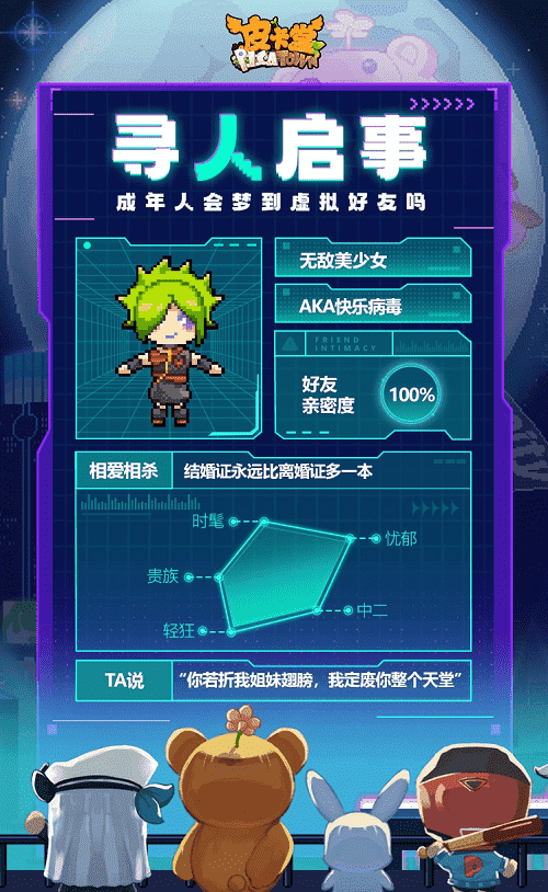除此之外,,,,更丰富的全新玩法也会在这里与大家见面,,,希望给大家带来不一样的游玩体验。。。。升级后的皮卡小镇,,大家可以和闺蜜一起逛购物街,,邀请三两好友来到自己开的小店,,,还可以在小屋体验海岛或城堡生活……总之,,希望大家能在游戏中找回最快乐的自己,,享受最纯粹的社交魅力。。