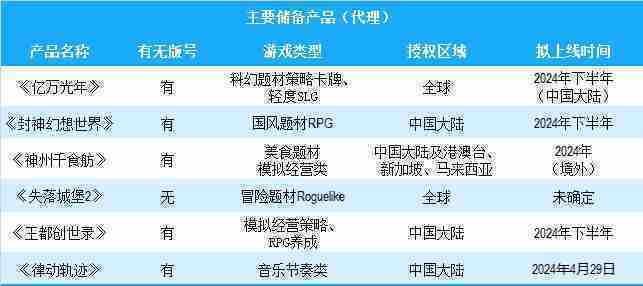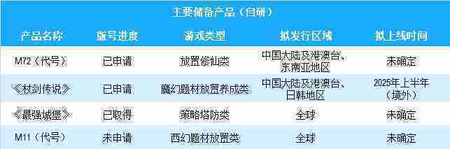 公司有多款储备产品,,,,涵盖放置类、、、策略类、、、、RPG、、、Roguelike等多元化游戏品类,,,储备的主要自研和代理产品如下::::